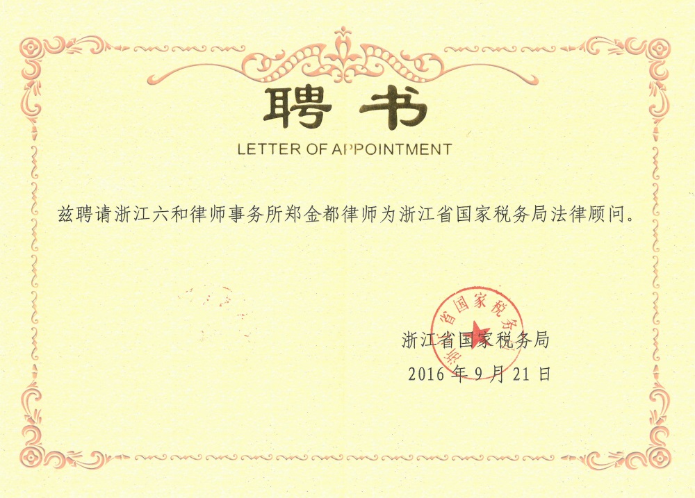 郑金都律师在聘用仪式上对六和所的政府法律顾问服务经验进行了简单介绍,并承诺六和律师将在法律服务过程中切实发挥顾问和智囊作用,为省国税局“依法治税”和依法行政工作贡献自己的力量。