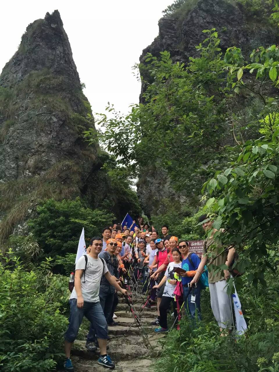 天公作美,从开始登山时,雨就渐止转阴,六和毅行队踌躇满志出发前行。因为是雨后,山路泥泞,长时间的攀爬,对人的体力和耐力都是另一种挑战。然这样的天气,也让大家欣赏到了别样的风景。之前的雨水为古道增添了空山新雨后的美感,峡谷中逍遥的溪水蜿蜒其中,涧水潺潺,烟生寒树。