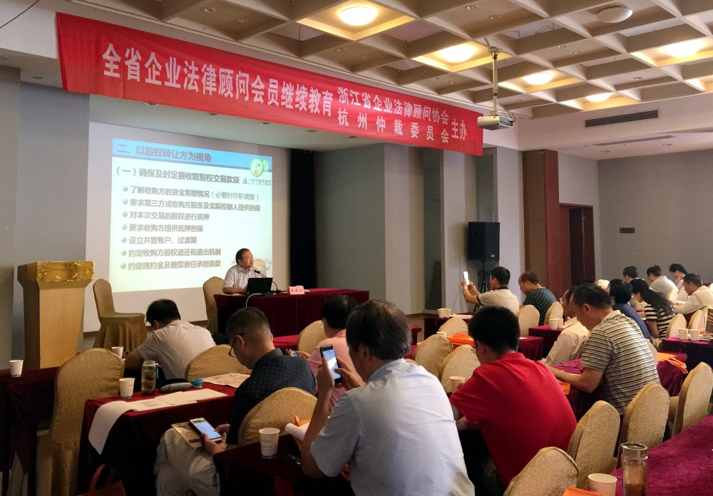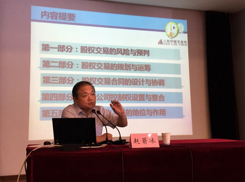 2016年6月27日、6月29日,六和所合伙人赵箭冰律师应浙江省企业法律顾问协会的邀请,为该协会300多家会员单位的法律顾问作了“股权交易的谋划与博弈”专题培训。