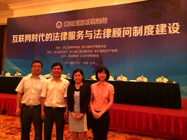 7月27日,以“互联网时代的法律服务与法律顾问制度建设”为主题的第四届浙江律师论坛在义乌隆重举行。本所再创佳绩,在全省50篇获奖论文中占了4篇。其中,赵箭冰律师与俞琳琼律师的论文《股权交易的谋划与博弈》获得本次论坛一等奖;黄伟源律师、卢飞燕律师的论文《转发“微博”、“微信”的侵权判定》、郑金都律师、杨捷律师的论文《论我国户籍登记制度中的公民的姓名变更权》和陈淦律师的论文《电子商务中电子错误的法律问题讨论》获得本次论坛二等奖。本所主任郑金都、律师俞琳琼、卢飞燕、陈淦作为获奖论文作者受邀参加论坛并领奖。
