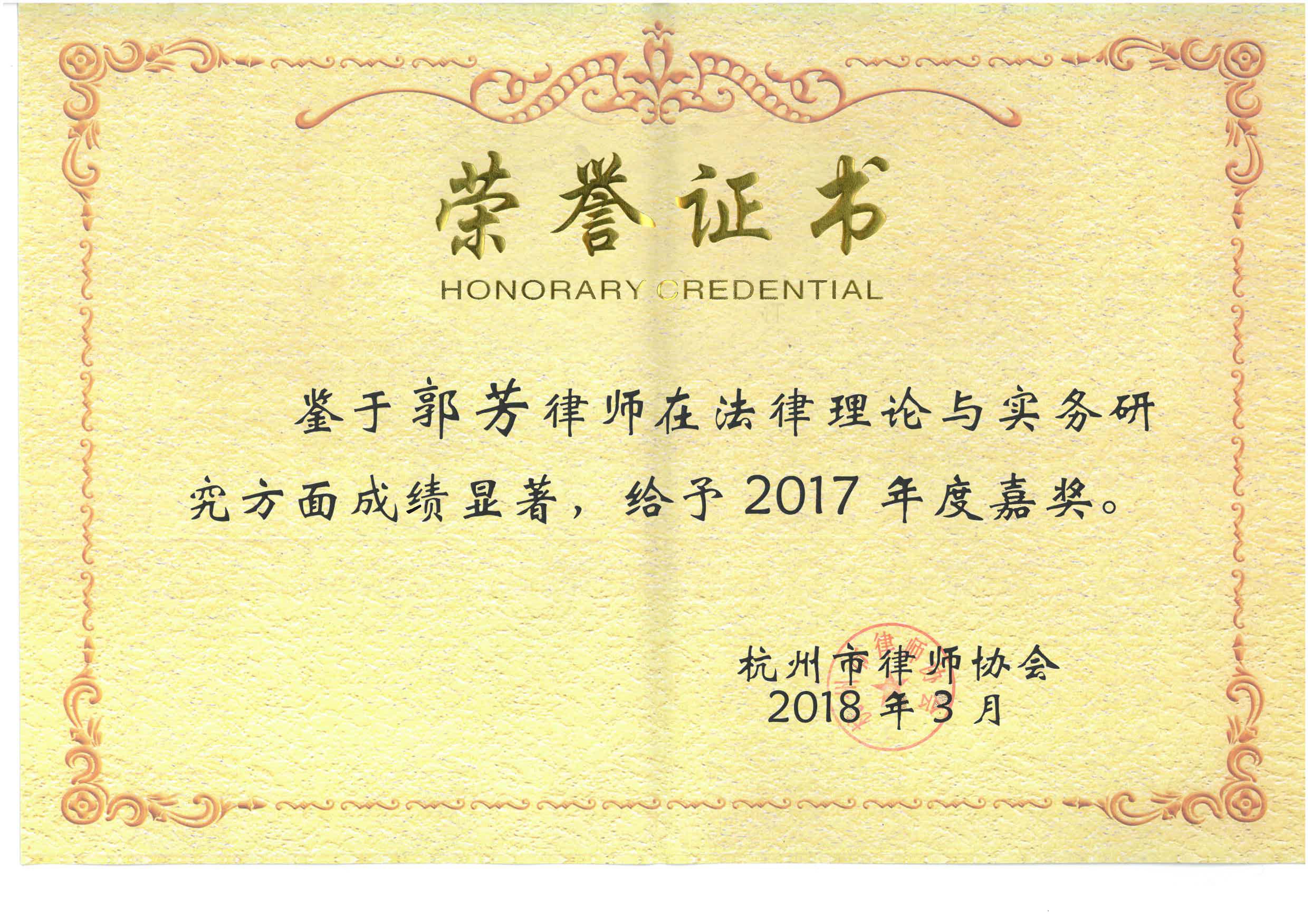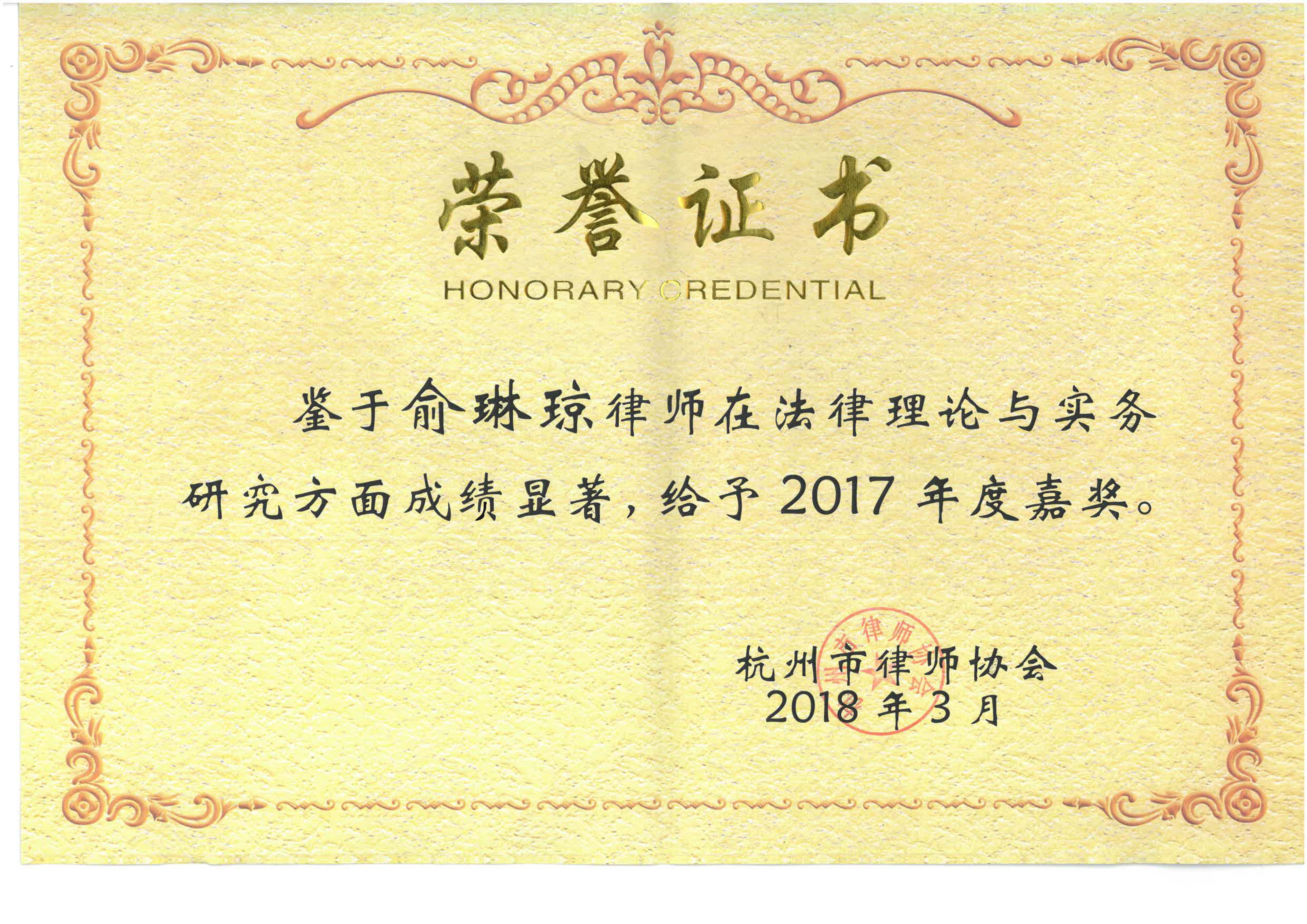 一直以来,六和所都非常关心律师行业的发展,积极提升律师社会形象,在2017年工作中取得显著成绩。根据《杭州市律师协会会员奖励办法(试行)》规定,经市律协第八届第十二次常务理事会暨奖励评审委员会审议通过,市律协授予六和所2017年度集体嘉奖。