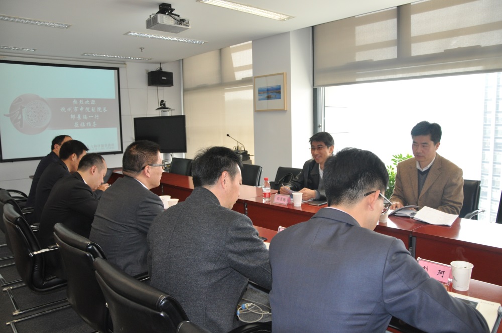 2016年3月29日上午,杭州市中级人民法院副院长邵景腾一行莅临六和所就“关于依法切实保障律师诉讼权利”进行调研。本所执行主任黄伟源律师等接待来访。