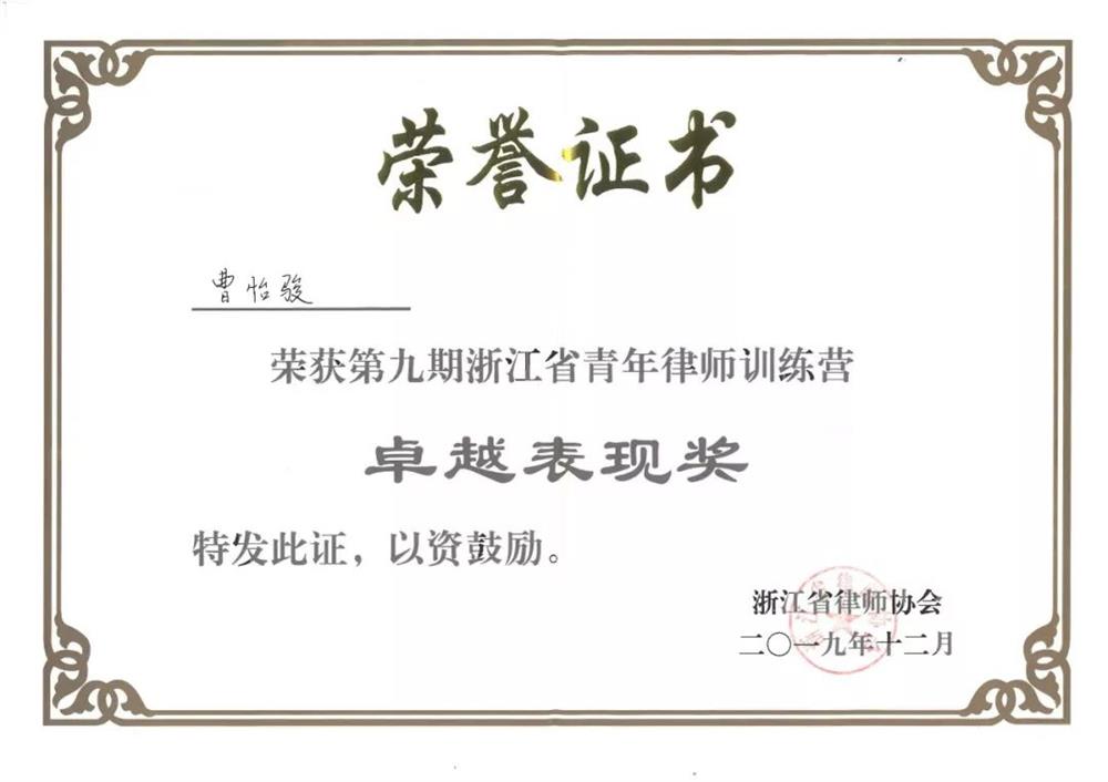 六和所曹怡骏律师、六和所义乌分所孔琼瑶律师、六和所舟山分所张佩佩律师作为青年律师代表参与本期青训营培训,其中曹怡骏律师荣获“卓越表现奖”。