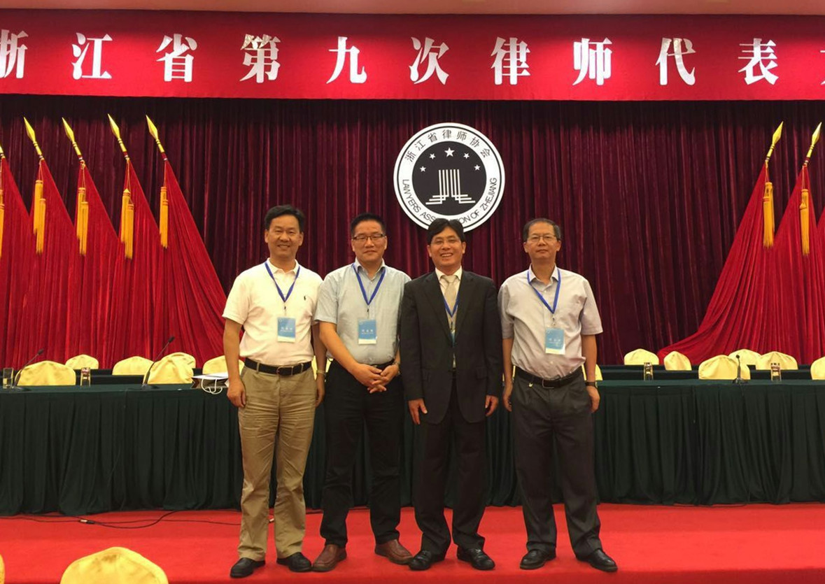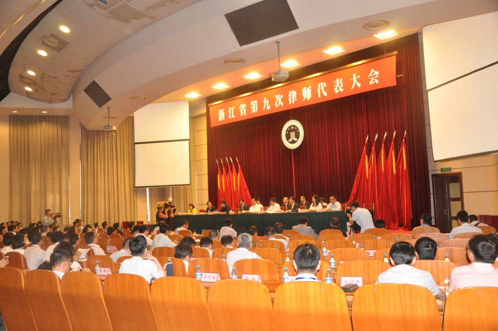 2015年6月12日——14日,浙江省第九次律师代表大会在杭州顺利召开,省委副书记、政法委书记王辉忠、省委常委、常务副省长袁家军、省人大常委会副主任厉志海、省政协副主席王建满、省高院院长齐奇、省检察院检察长陈云龙、中华全国律协副会长金山、省司法厅厅长赵光君等相关领导出席会议。来自全省400余名律师代表及特邀代表参加会议。